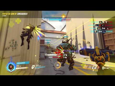 Just had an amazing Volskaya game that was super close in QP. Their solo Bigitte healer wasn't cutting it so they brought out a Mercy, I'm doing my best to keep Pulse Bombs on the Rein, and their Mei and Junk and Brigitte made getting in close very tricky.