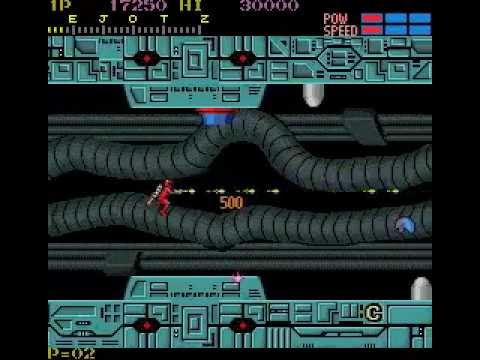 Each level you'd fight through waves of enemies, turrets, and so forth. The level ended with two transporters (top or bottom) that warped you to the next numbered "section". Eventually, you'd find a red transporter that killed you if you tried to enter it. It would unlock after defeating the first area's boss. There were 3 total areas with each getting far more difficult. Making things worse, the sections were all interconnected and you had no map. For example: