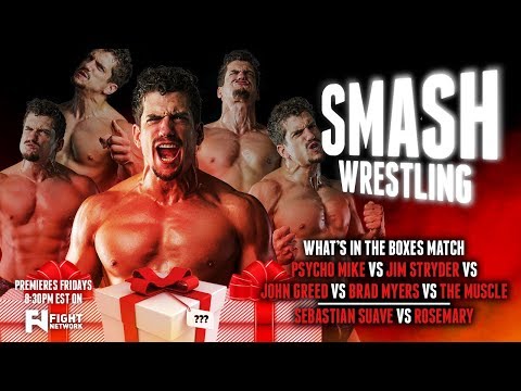 In this week's episode of Smash wrestling Rosemary fights Sebastian Suave and Psycho Mike stabs a man with scissors while trying to win a box. Also The Muscle is still an idiot.