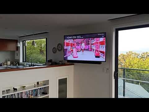 My parents have their TV mounted on an automated arm. Push one button, it swings out from the wall and faces the living area. Push again, it swivels to face the dining table. Again, and it turns towards the kitchen. Then when you turn it off, it folds back flush(ish) against the wall.