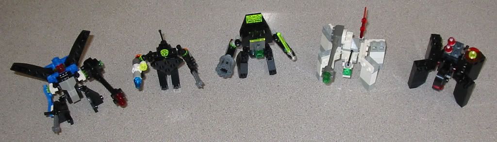 EDIT: So I'm digging through my parts while looking at the pics in the OP, and I might be able to pull something off, but I can't see what all of the parts are, especially on the 4 legged ones. I can't see what connects the legs to the torso! Anyway I can't seem to find any pics or anything on what parts are used and what/not... That would be great!